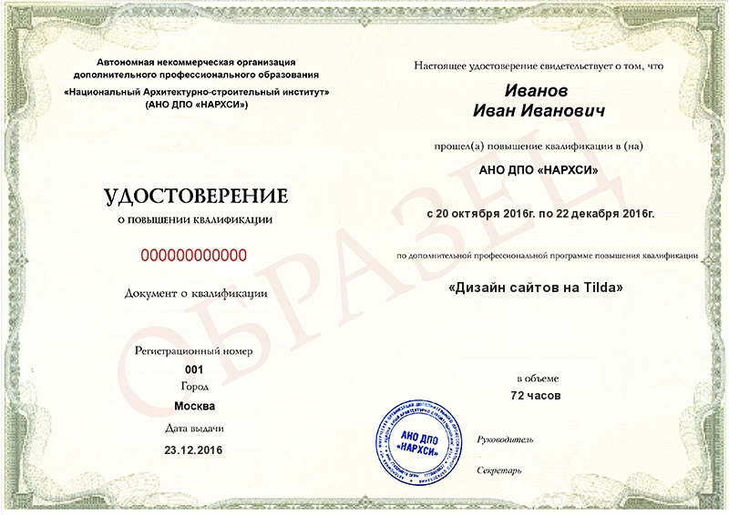 Курс повышения квалификации Дизайн сайтов на Tilda (72ч)